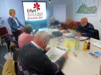 Informationen vom Beginn des Gartenbaus in Erfurt, über jahrelange Erfahrungen mit der IGA bis hin zum Konzept für die BUGA 2021 wurden von Frau Kathrin Weiß, der Geschäftsführerin der Bundesgartenschau Erfurt 2021 gGmbH ausführlich dargelegt