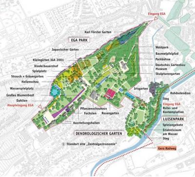 Um nur einige, wichtige Zahlen zu wiederholen: Es werden in Erfurt drei Standorte vorbereitet – der Nordpark, der egapark und der Petersberg. Die gGmbH hat gegenwärtig 14 MitarbeiterInnen. Im Plan stehen 115 ha Bearbeitungsfläche, die zu 70 ha Ausstellungsfläche einbezogen werden sollen. Insgesamt stehen 61 Mio. Euro im Investitionshaushalt. In der Zeit der BUGA, vom 23. April bis zum 17. Oktober werden 2 Millionen Besucher erwartet.