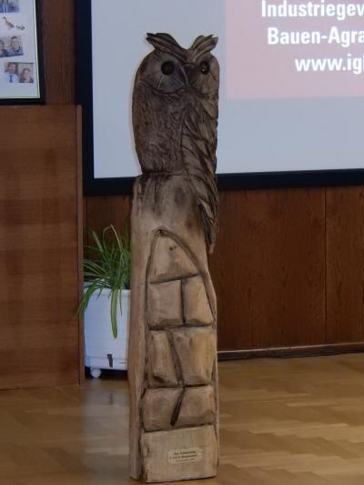 Dass Peter nicht zum "alten Kautz" wird, bekommt er von den Ehrenamtlichen eine Eule für seinen Garten