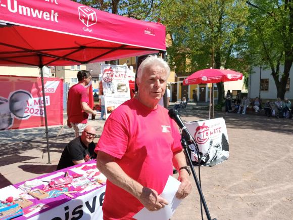Auch in Apolda macht sich der Kreisvorstand des KV Weimar Weimarer Land des Bezirksverbandes Thüringen der IG BAU auf eine 1.Mai-Kundgebung stark. Und das mit Erfolg.