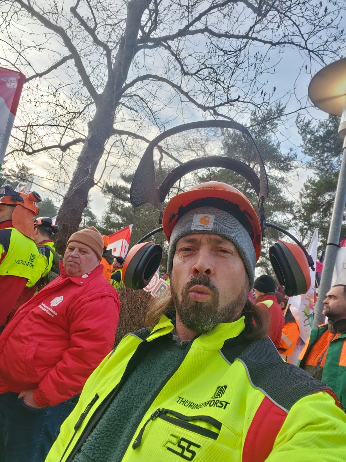 Auch Vertreter der FG Forst Thüringen unterstützen die Streikenden in Potsdam.