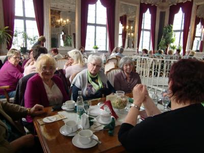 zum Ausklang ging es noch zu Kaffee und Kuchen ins Museumscafe im Hessensaal oder dem sogenannten „Turmcafe“. Gut gelaunt – trotz Regen und kalten Wind - fuhren die Teilnehmerinnen mit Zug oder Auto heim.