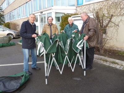 Nur bei einem Zelt war das Gestänge gebrochen. Es kann so nicht eingesetzt werden. Stellt man das erst man 1. Mai bei Aufbau der Infostände fest, dann hätten die Kollegen und Kolleginnen ein Problem, das sich so vermeiden läß.