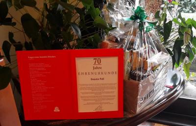 Unsere Mitglieder die in diesem Jahr auf 70 bzw. 75 Jahre Mitgliedschaft zurückblicken, wollen wir aber besonders ehren. Der Bezirksbeirat hat auf Vorschlag des Bezirksvorstandes entschieden, dass sie ihre Urkunde und die Ehrennadel persönlich übergeben bekommen. Ein Mitglied des Bezirksvorstandes und ein Vertreter des zuständigen Kreisverbandes werden sie zu Hause besuchen und auch einen Blumenstrauß sowie einen Präsentkorb in Form eines Ostpaketes überreichen.