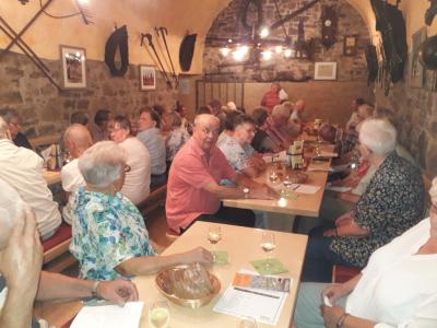 „Essen und Trinken hält Leib und Seele zusammen“ so war zu verstehen, dass nach geistigem Mahl Essen und Trinken folgen sollte. Dazu war das Weingut Katja Schuler.Petschler in Obereisenheim ausgewählt.
