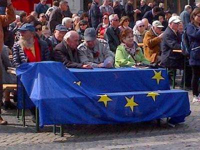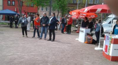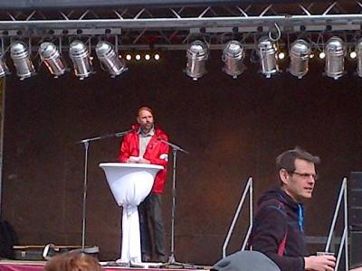 9:30 in Sömmerdamit mit ca. 160 TN und 6 NPD Leuten mit 2 Plakaten im Hintergrund. Da am 1.5. immer gleichzeitig die Feuerwehr mit Bratrost, Gulaschkanone und großem Programm feiert, gibt es nur eine kurze Veranstaltung, die nach Rede und Grußworten nach 90 Minuten vorbei ist.