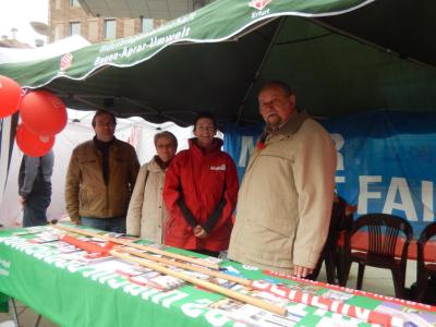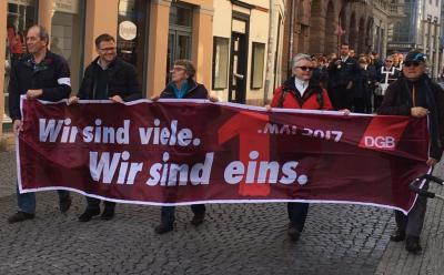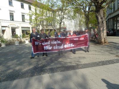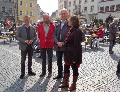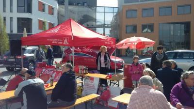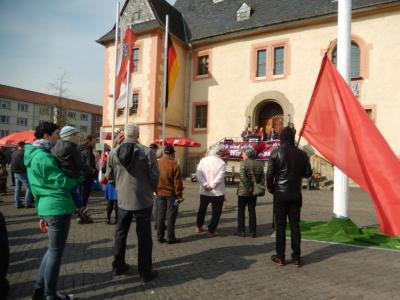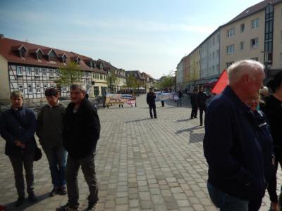 Viele Kolleginnen und Kollegen sind zur Kundgebung nach Suhl gekommen, um mit Bürgern, Gewerkschaften und demokratische Partein ins Gespräch zu kommen und sich aus zu tauschen.