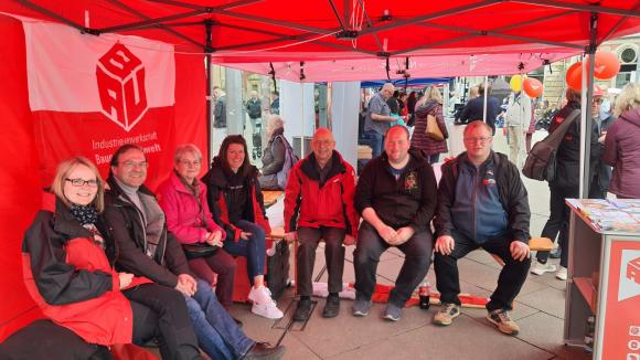 Der 1. Mai 2021 war nicht wie gewohnt, aber er fand statt. Zwar nur als Kundgebung auf dem Anger, dafür mit einem Wiedersehen mit vielen Kollegen und Kolleginnen aus der IG BAU und den anderen DGB-Gewerkschaften. Sandro Witt, stellvertretender Vorsitzende DGB-Vorsitzender in Hessen-Thüringen hielt eine kämpferische Rede, die Vertreter der demokratischen Parteien sagten den Gewerkschaften ihre Unterstützung bei der Durchsetzung von Arbeitnehmerrechten zu.