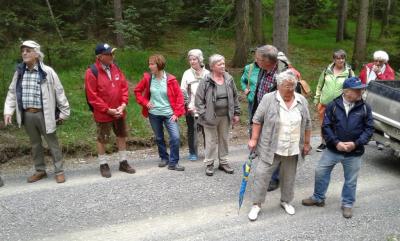 25 Wanderfreundinnen und Wanderfreunde, darunter 15 gewerkschaftlich organisierte, hatten sich dazu in Neckeroda getroffen um sich, unter Begleitung des für dieses Arial zuständigen Revierförsters Jörg Titze, auf den 9,1 km langen Ausflug zu machen.