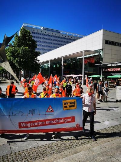 Die Kollegen der Eurovia Weimar stehen hinter den Forderungen ihrer IG BAU.
